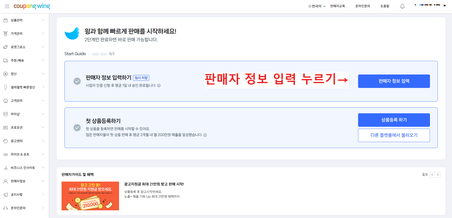 이건 통신판매업 신고를 위해 무조건 있어야 하는 서류라고 하더라. 온라인으로 물건을 팔려면 국가에 신고를 해야 하는데 그전에 "우리는 고객의 돈을 안전하게 보호한다"는 증명이 필요하다. 그리고 사업자용 통장을 만들면서 은행에서 발급받을 수도 있고 네이버 스마트스토어 같은 곳에서 가입하고 받을 수도 있다. 나는 쿠팡 마켓플레이스에서 진행을 했다. 회원가입을 하고 정보입력을 하러 들어가서 정보입력하고 구매안전서비스 이용 확인증 다운로드 하고 저장 후 추후 진행 해도 된다. 이게 없으면 다음 단계인 통신판매업 온라인 신고 및 시청을 방문하여 신청이 안된다.